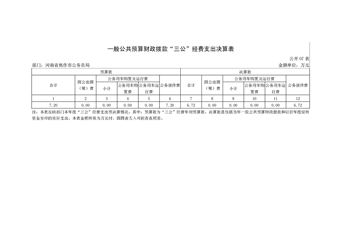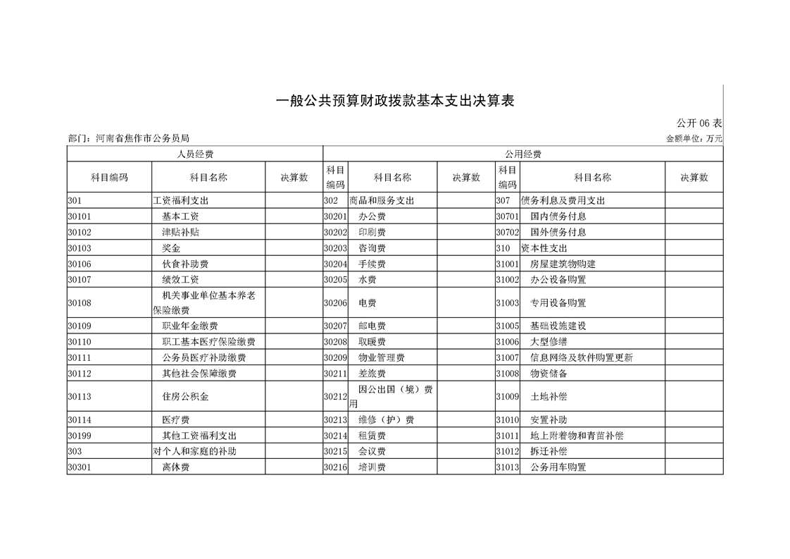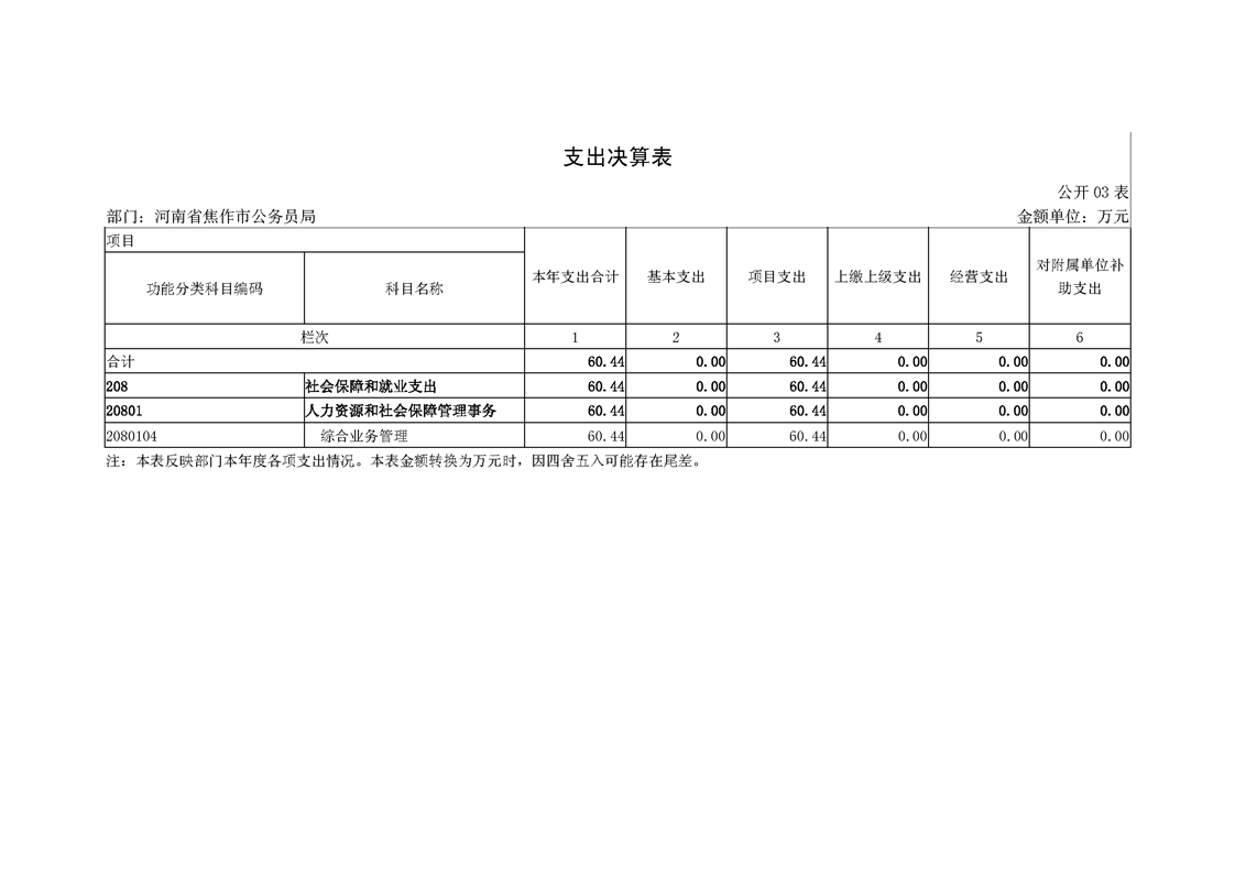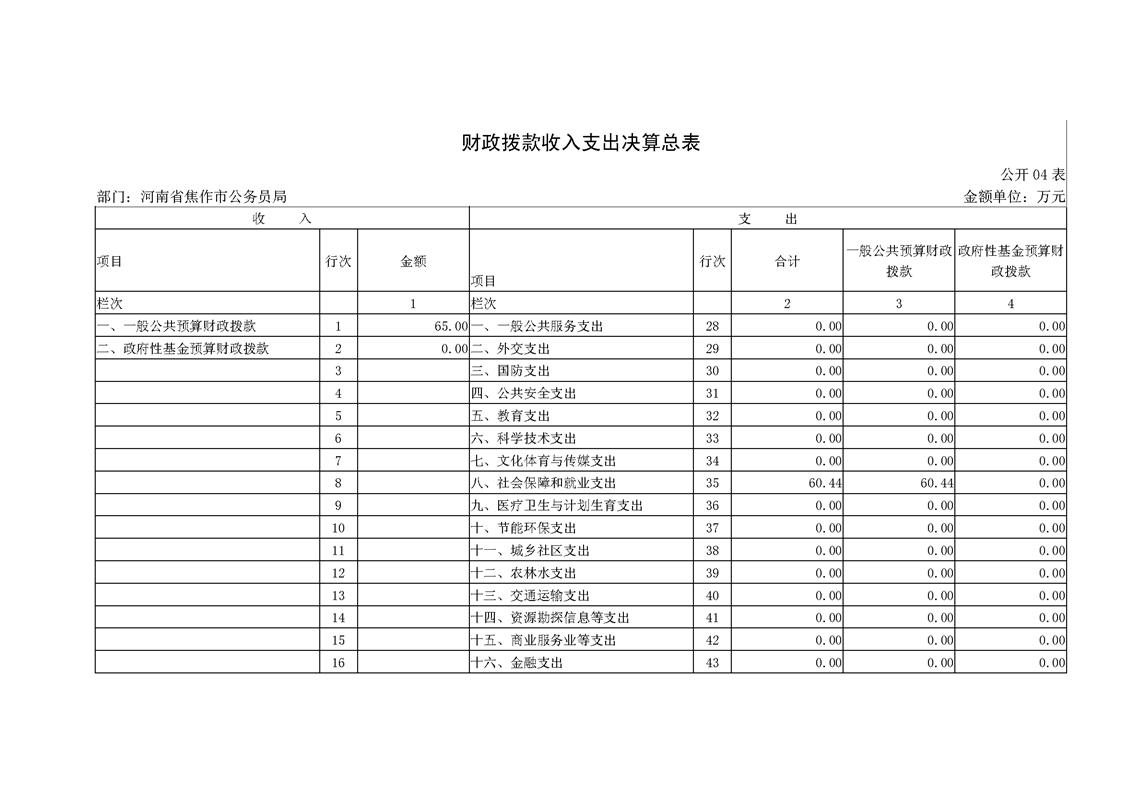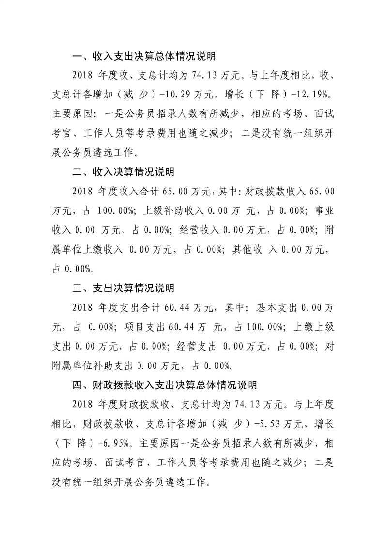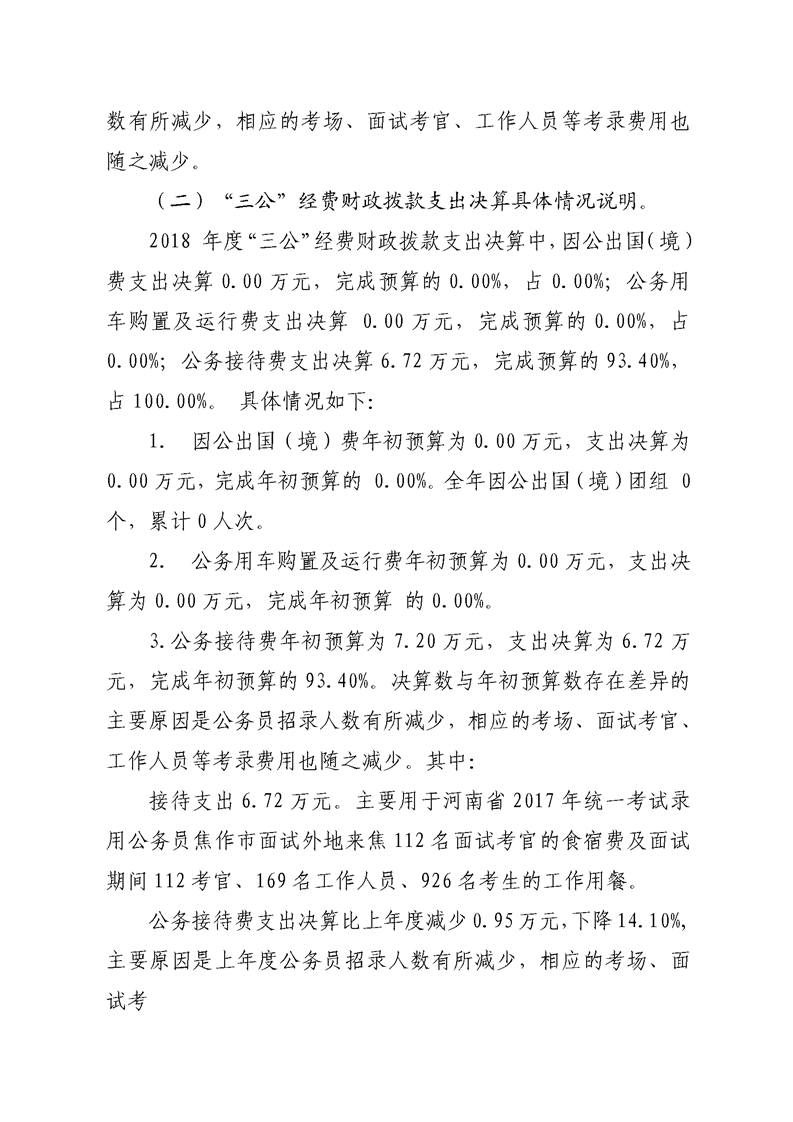 焦作市公务员局2018年度部门决算公开