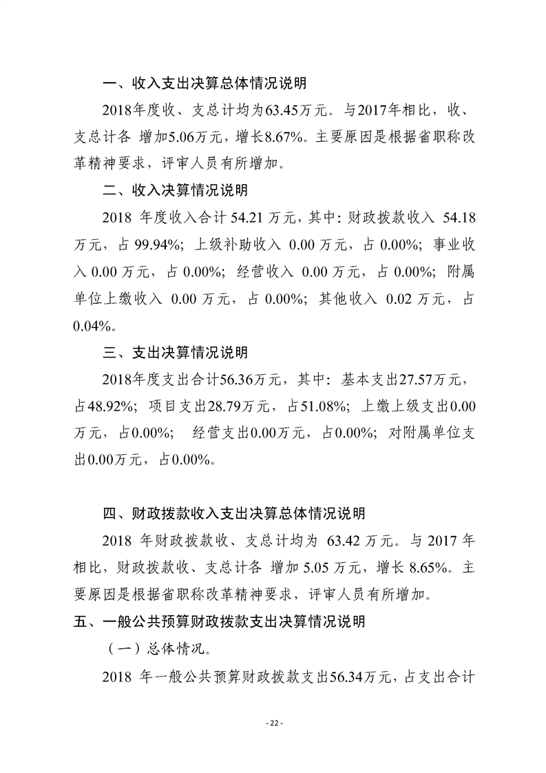 2018年职称评价服务中心决算公开的情况说明