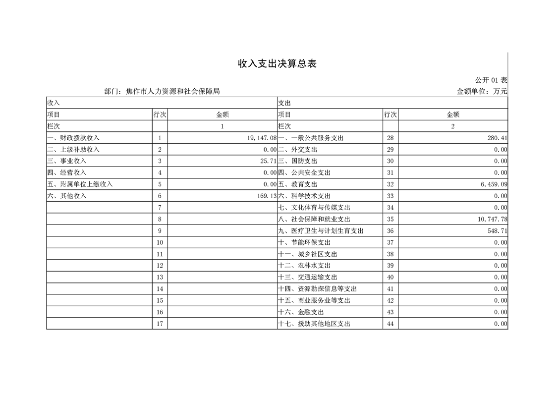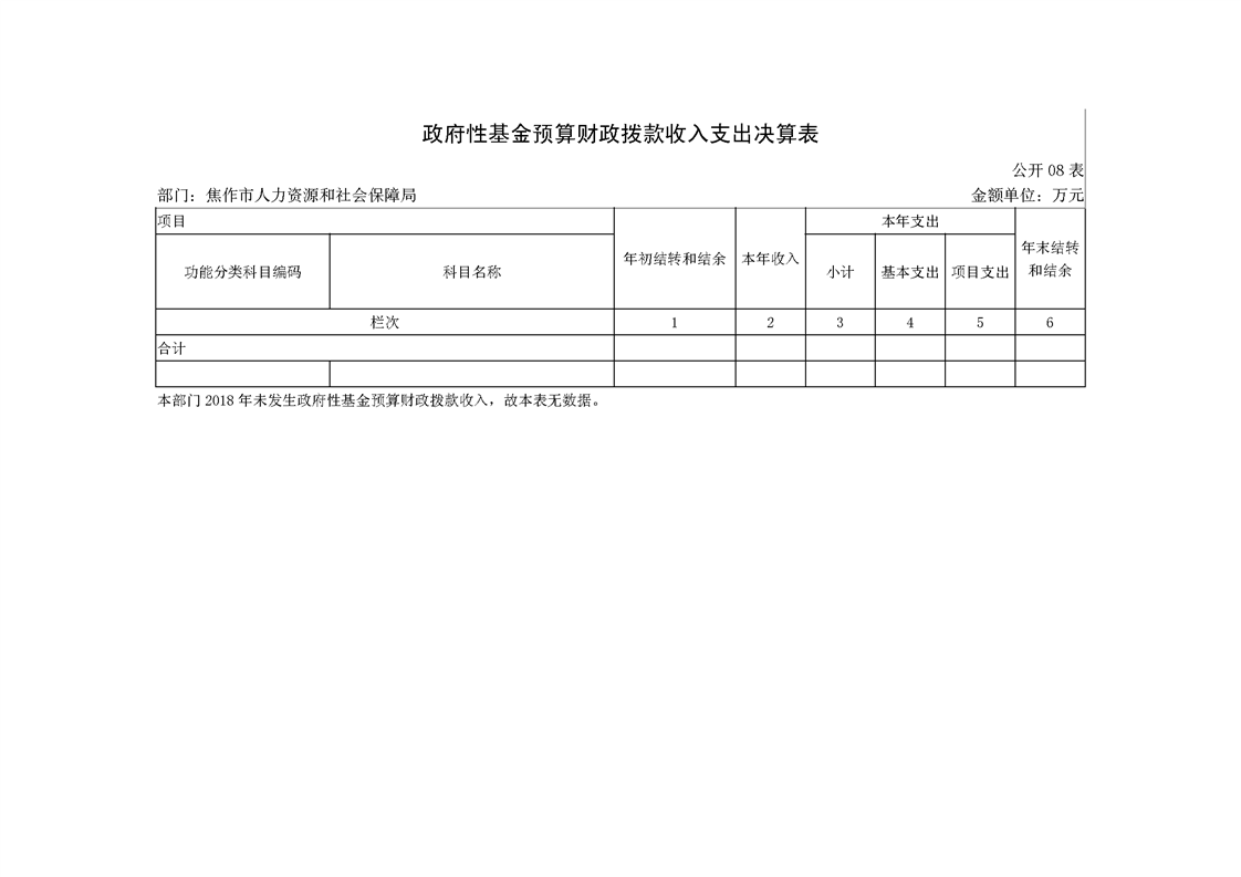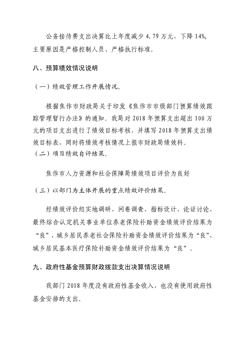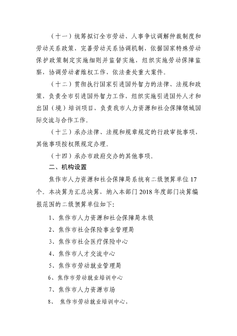 焦作市人力资源和社会保障局系统2018年度部门决算公开