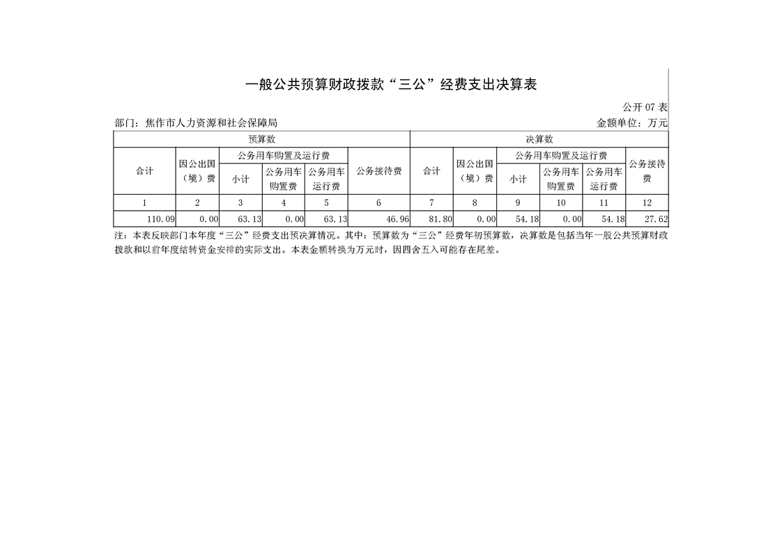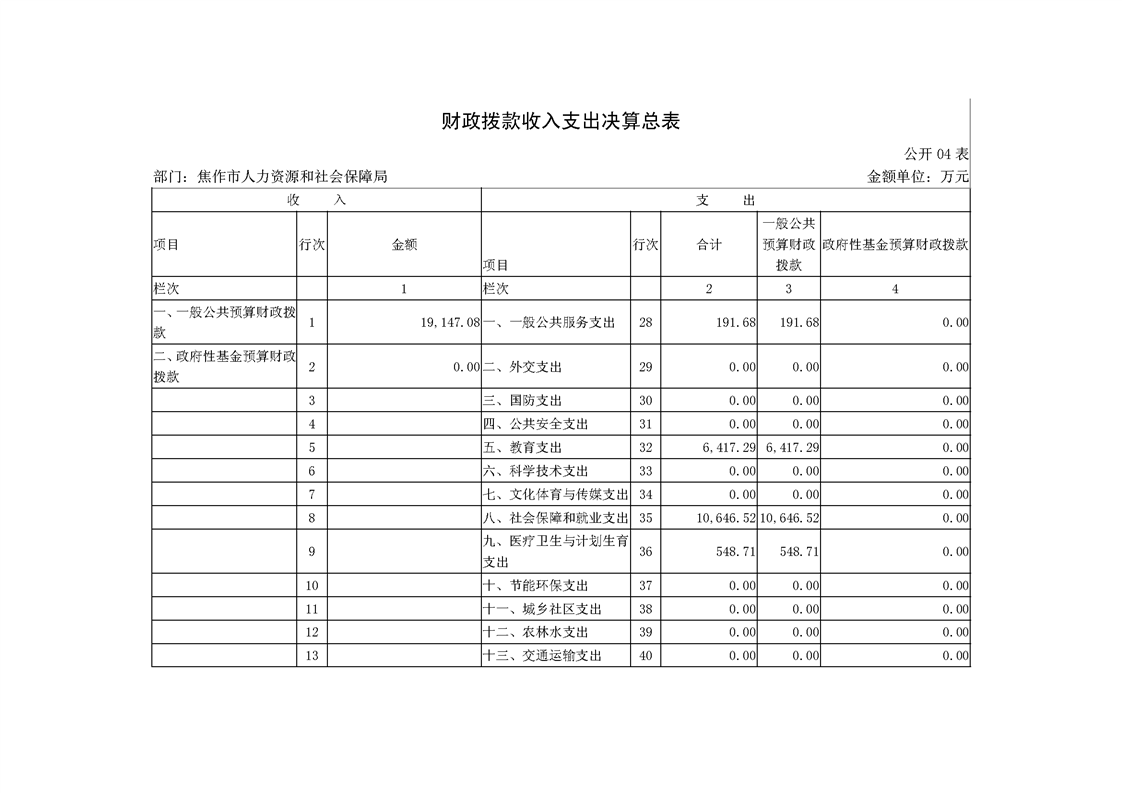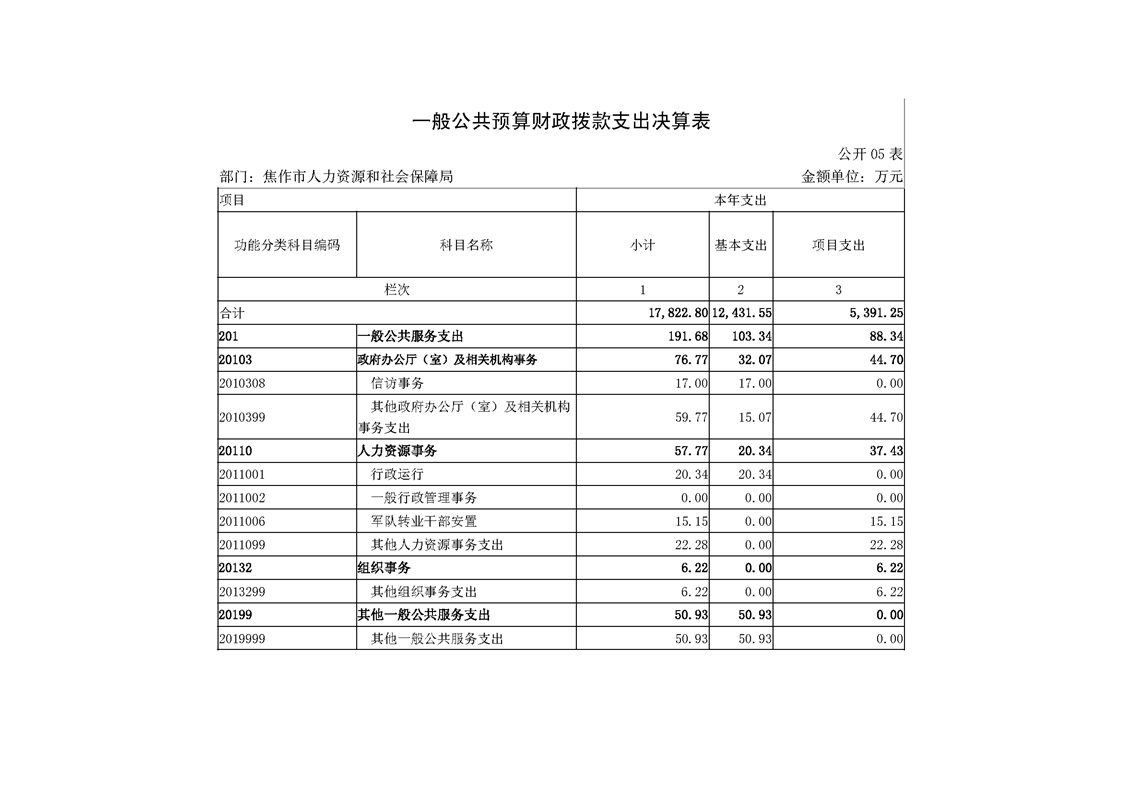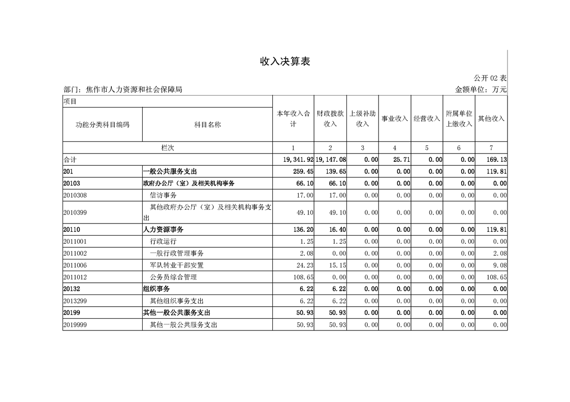 焦作市人力资源和社会保障局系统2018年度部门决算公开