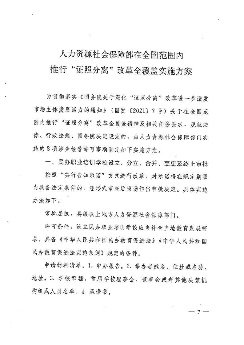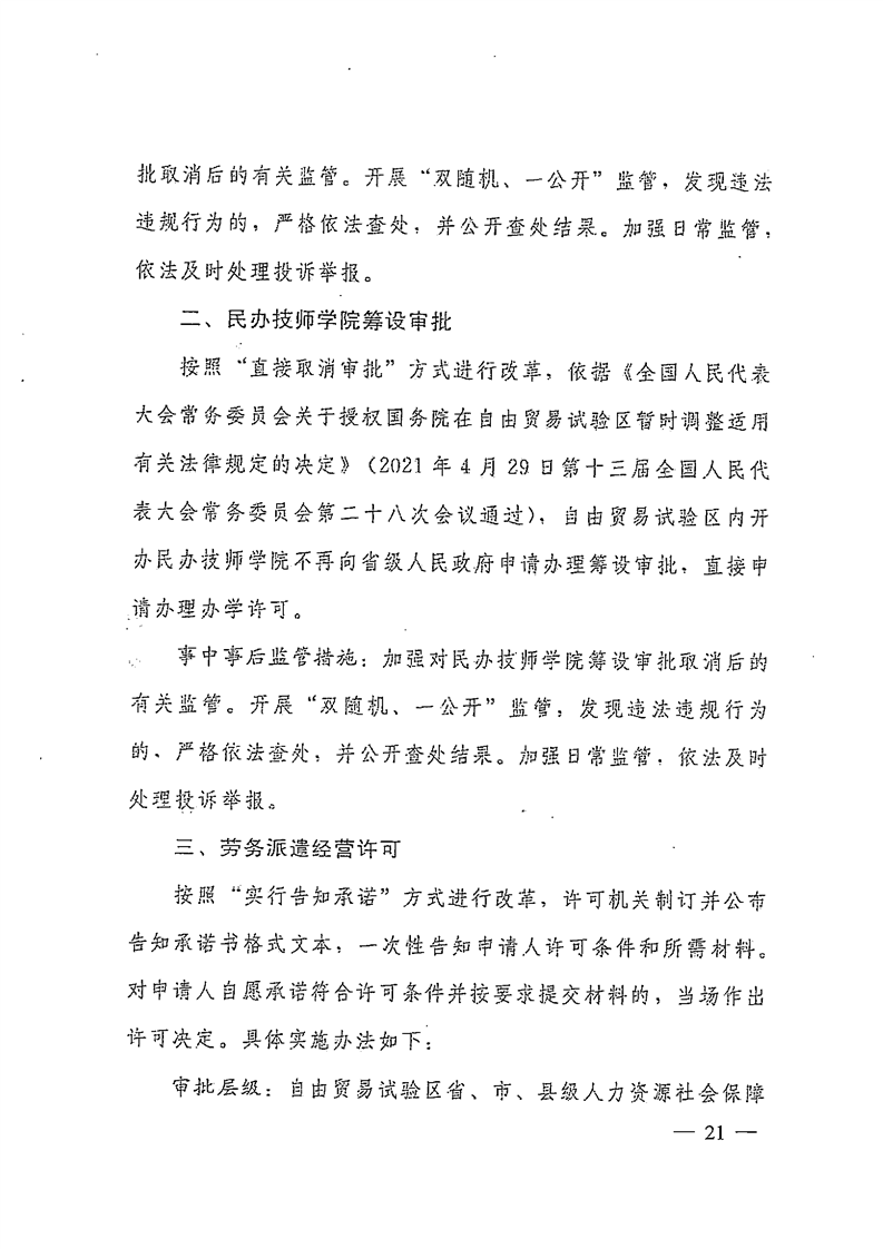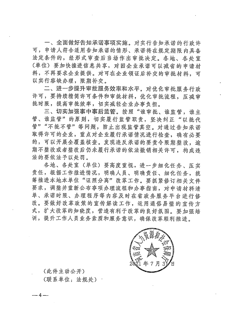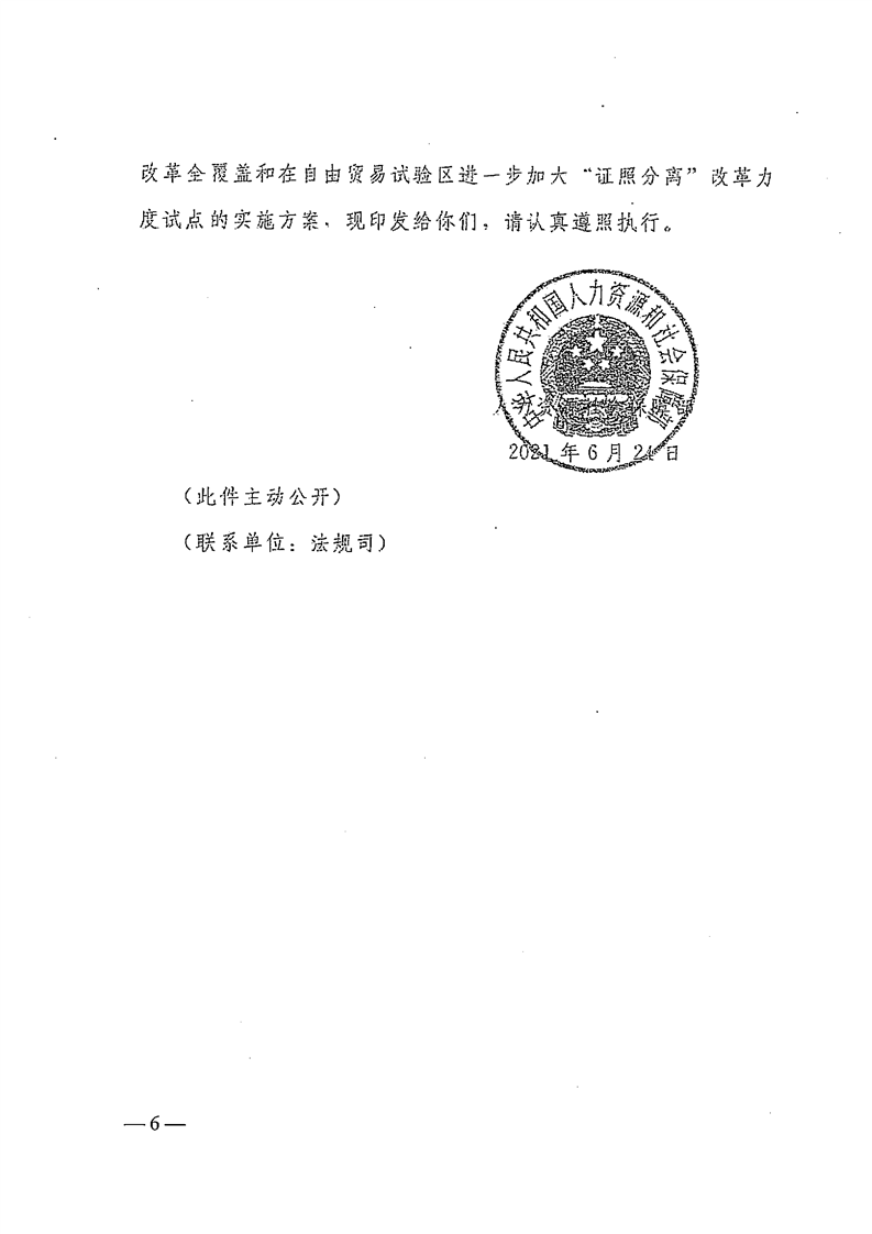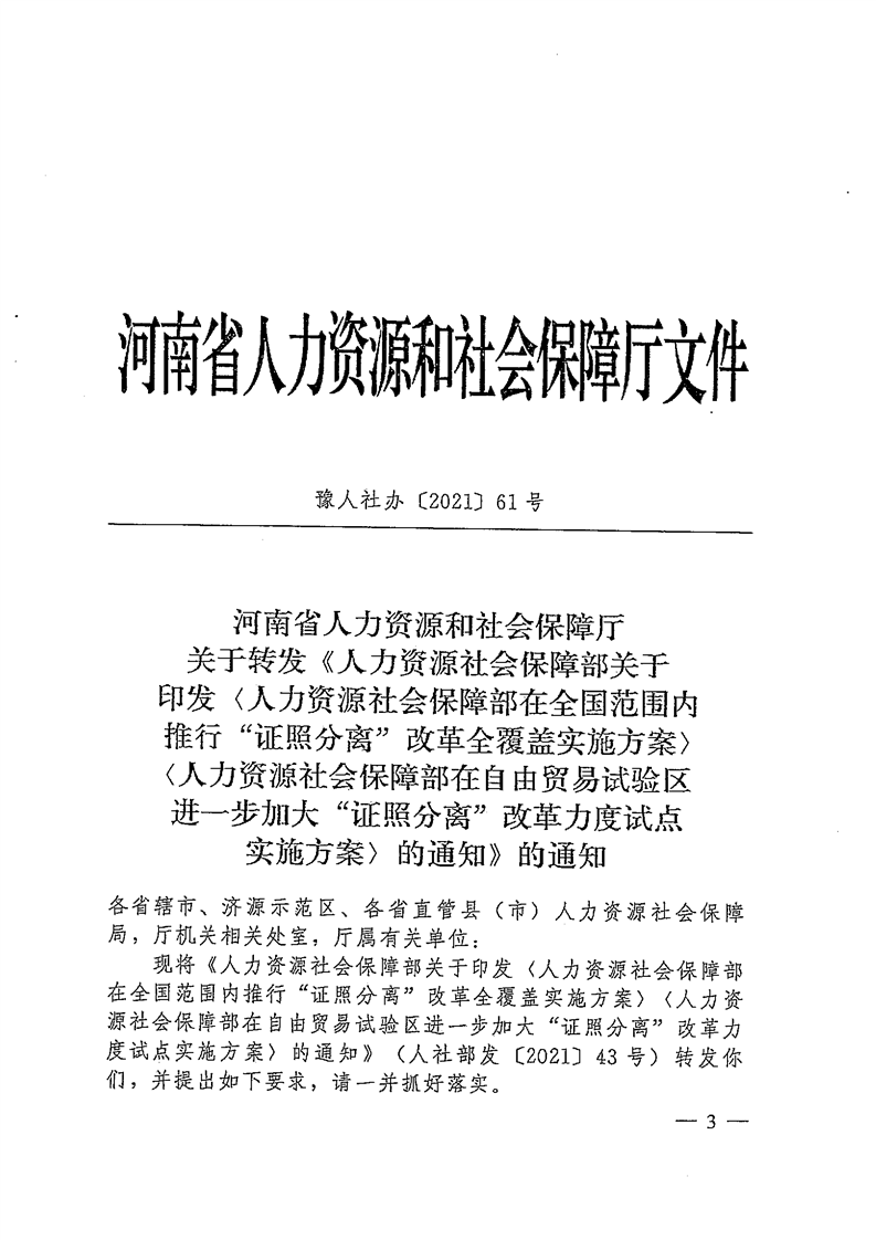 焦人社文〔2021〕63号 关于转发豫人社办〔2021〕61号人力资源社会保障部在全国范围内推行“证照分离”改革全覆盖实施方案和在自由贸易试验区进一步加大“证照分离”改革力度试点实施方案的通知