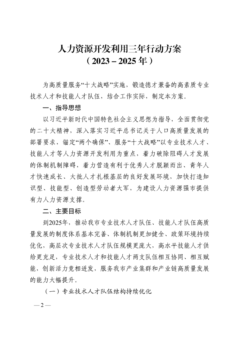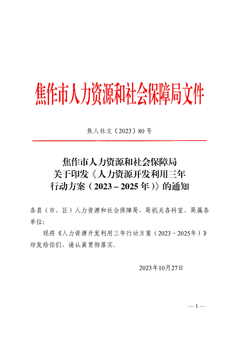 焦作市人力资源和社会保障局关于印发《人力资源开发利用三年行动方案(2023-2025年)》的通知