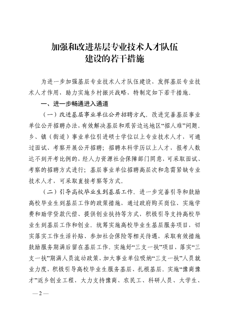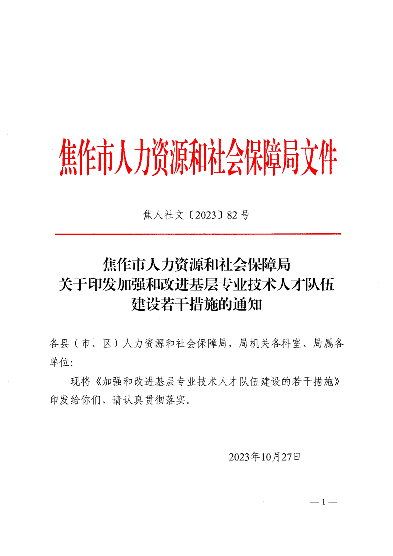 焦作市人力资源和社会保障局关于印发加强和改进基层专业技术人才队伍建设若干措施的通知