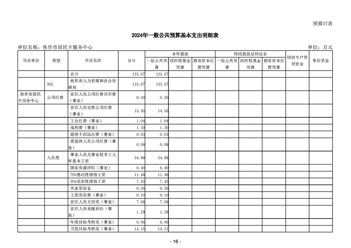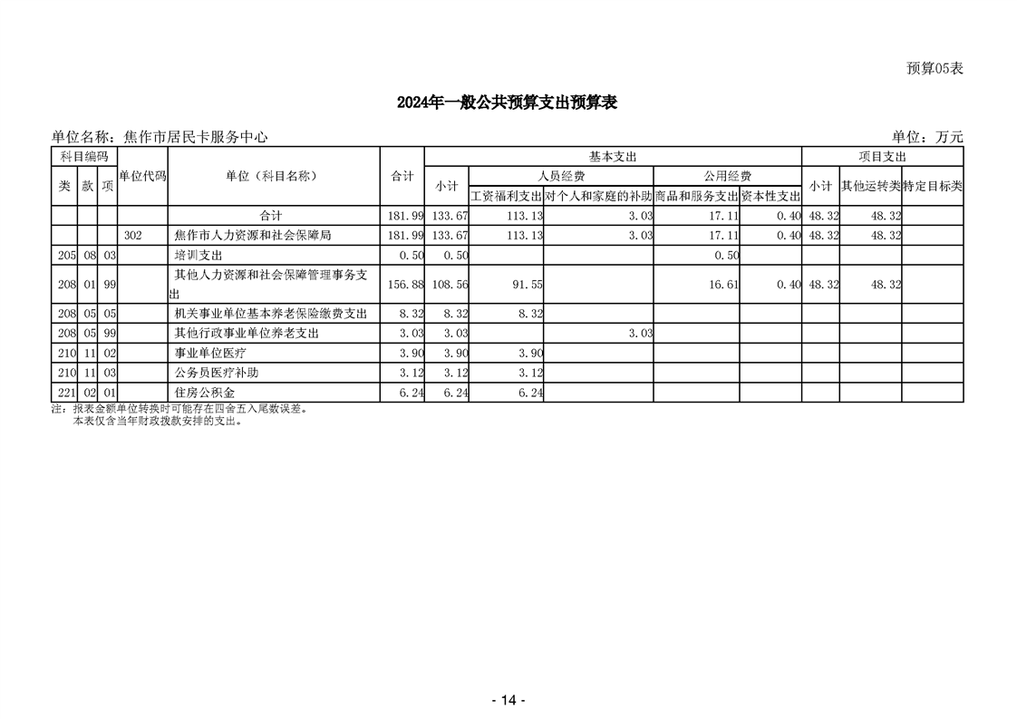 焦作市居民卡服务中心2024年度单位预算
