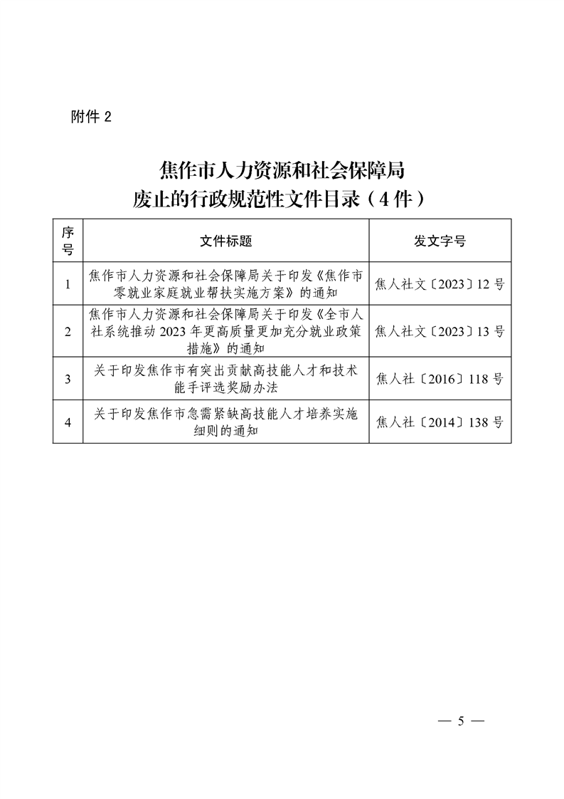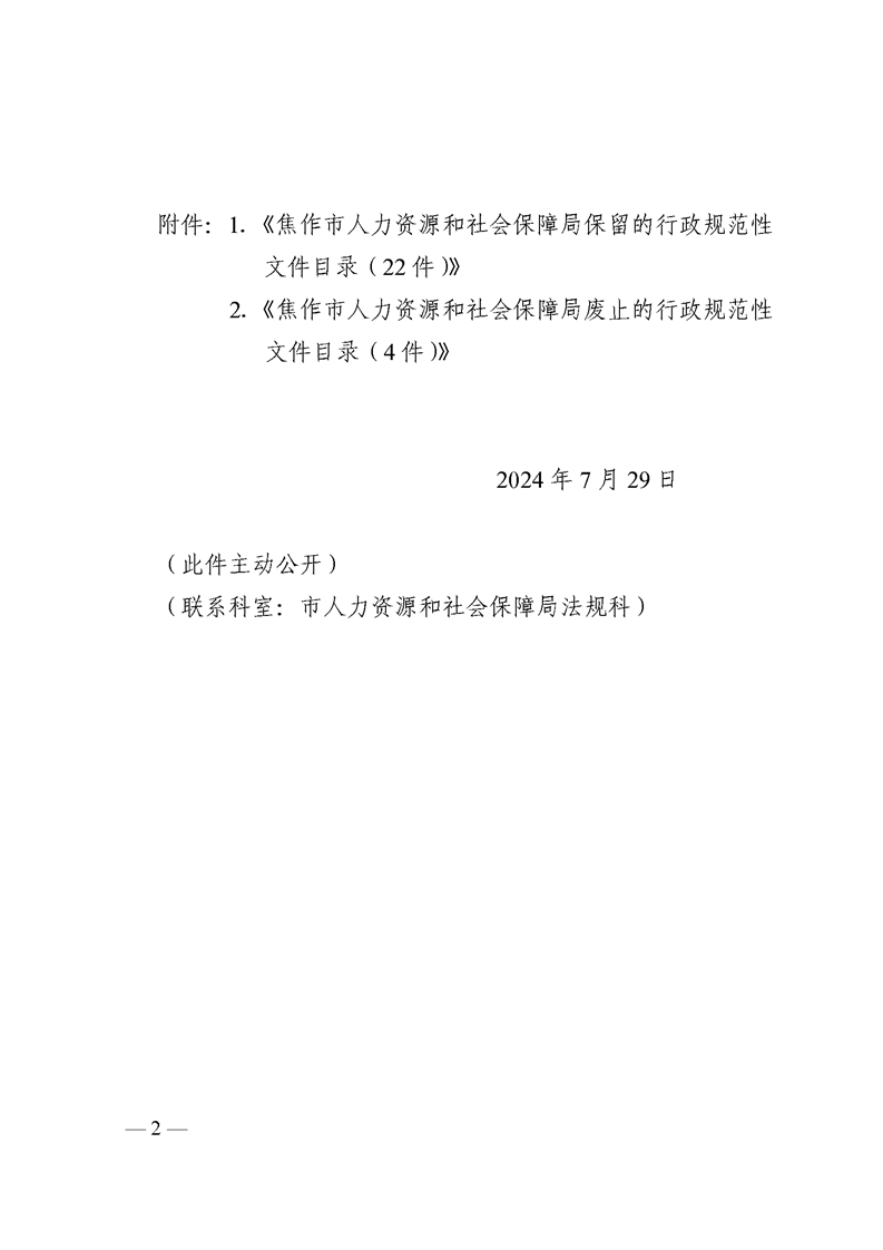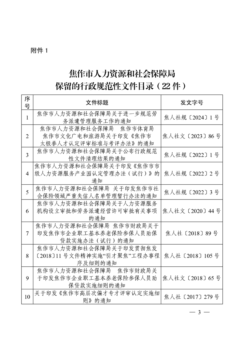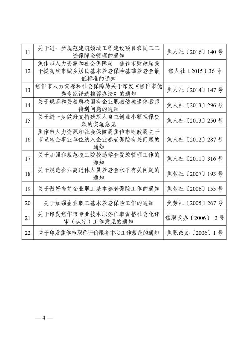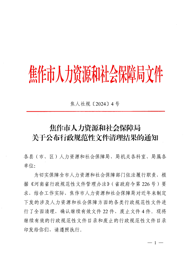 焦作市人力资源和社会保障局关于公布行政规范性文件清理结果的通知