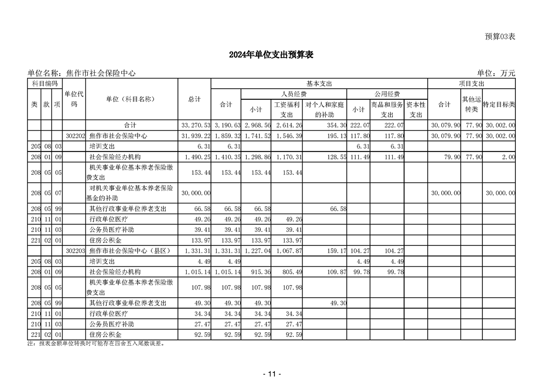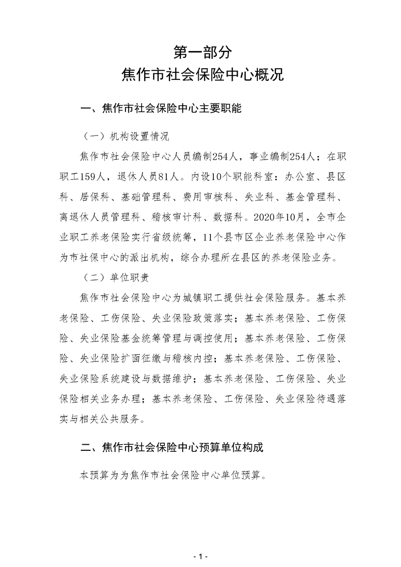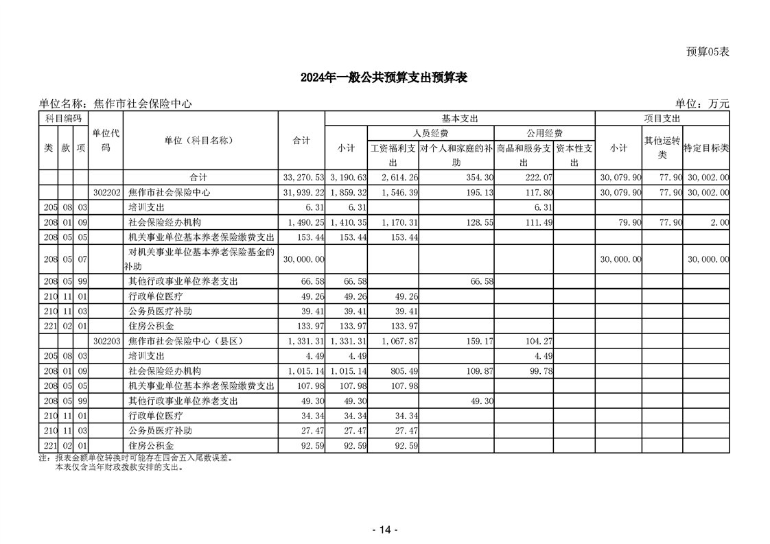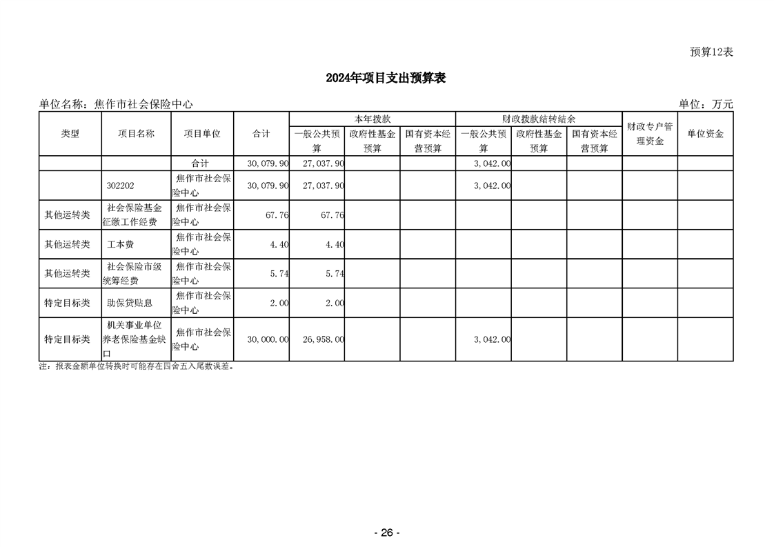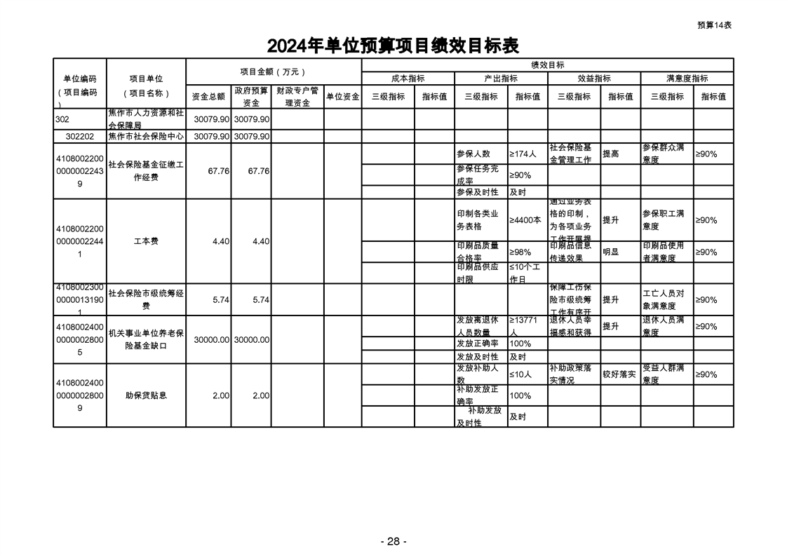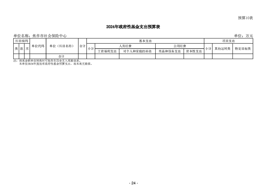 焦作市社会保险中心2024年度单位预算