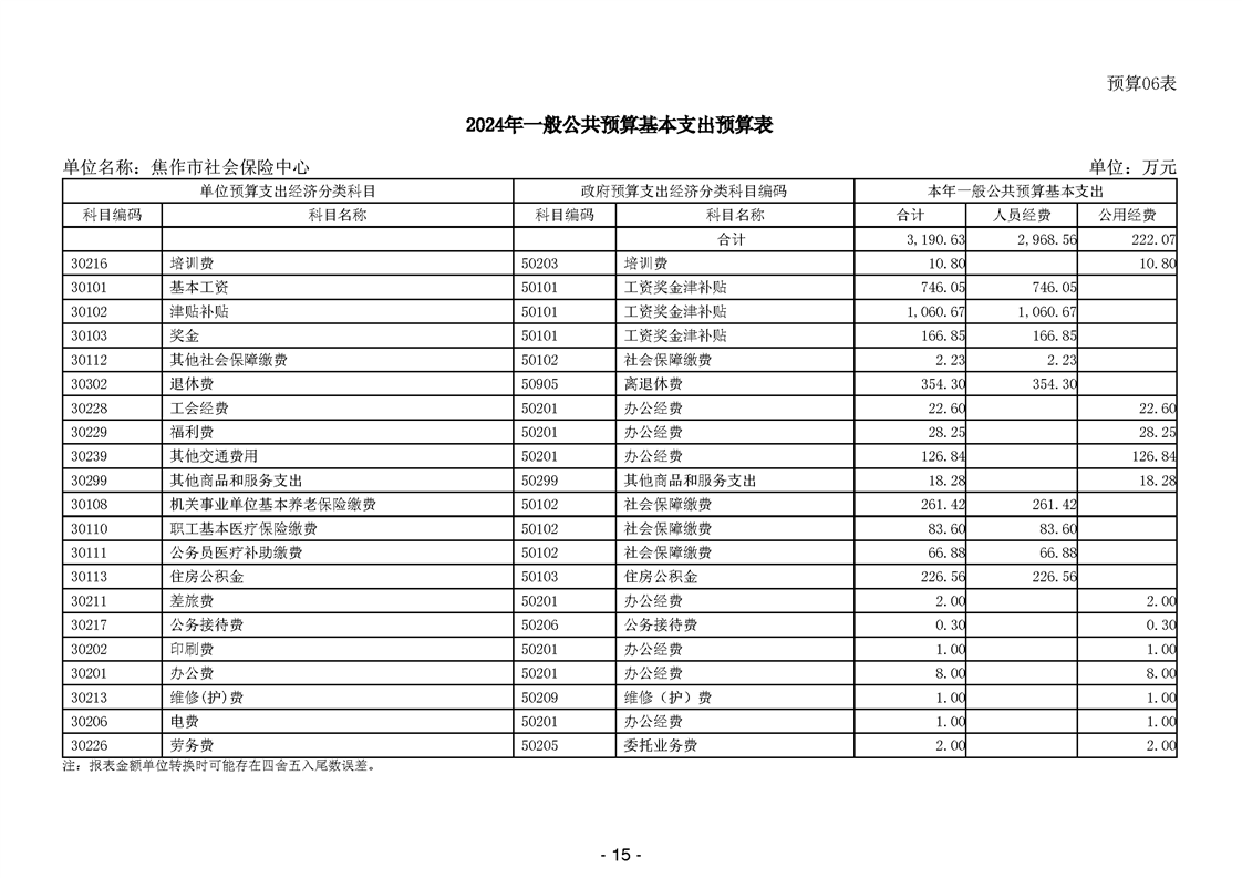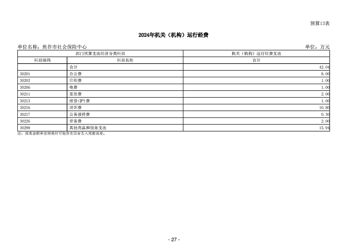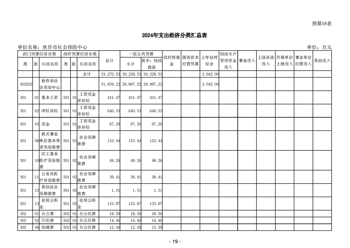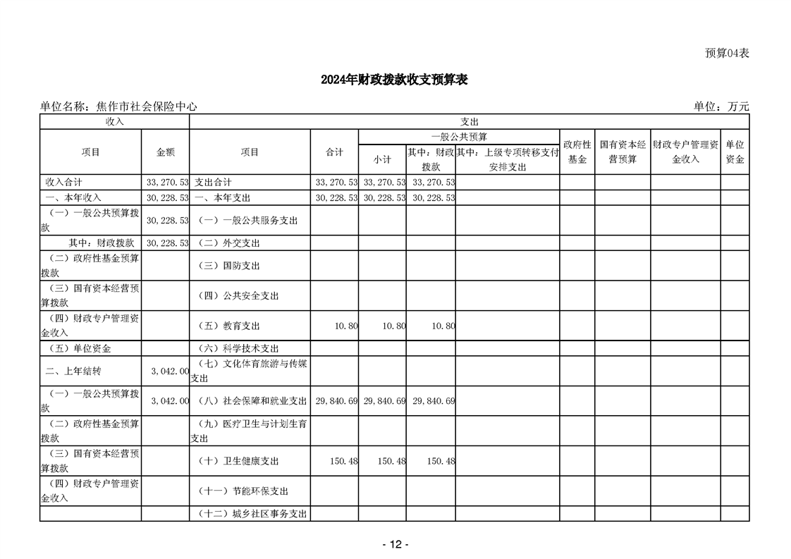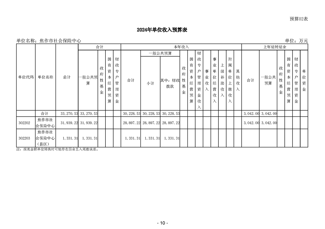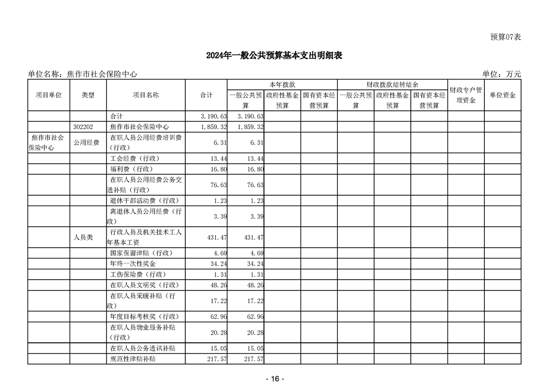 焦作市社会保险中心2024年度单位预算