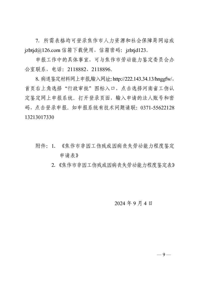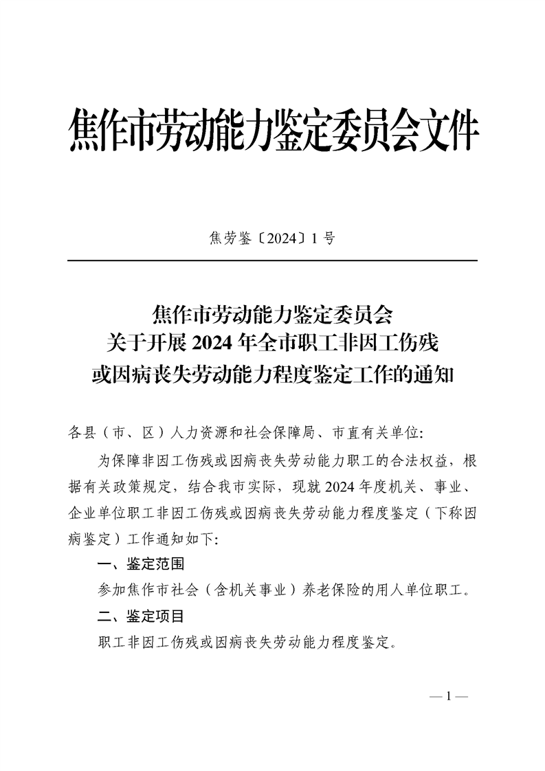 焦作市劳动能力鉴定委员会关于开展2024年全市职工非因公伤残或因病丧失劳动能力程度鉴定工作的通知