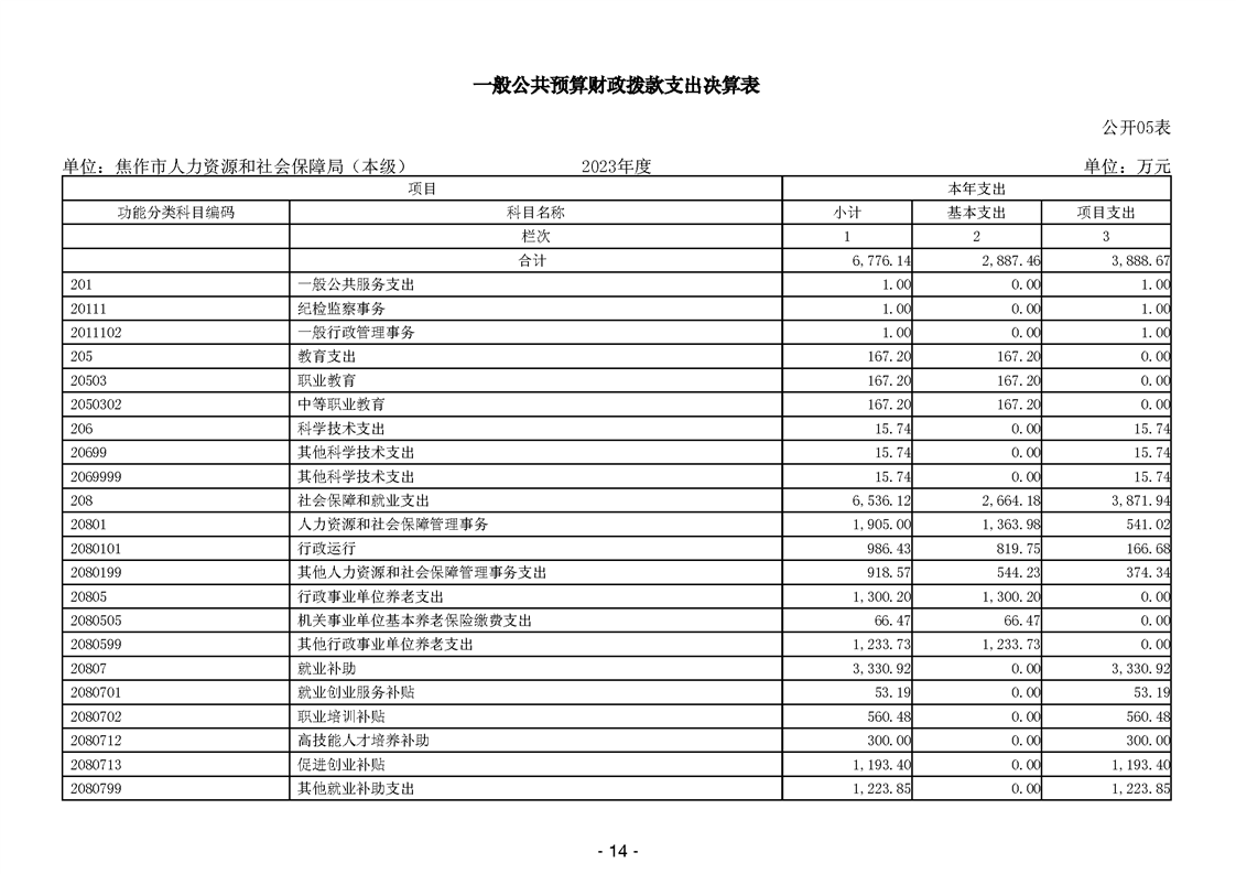 2023年焦作市人力资源和社会保障局(本级)部门决算