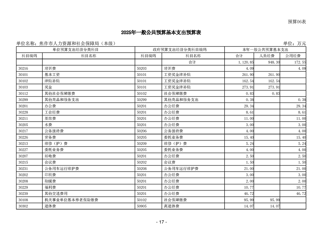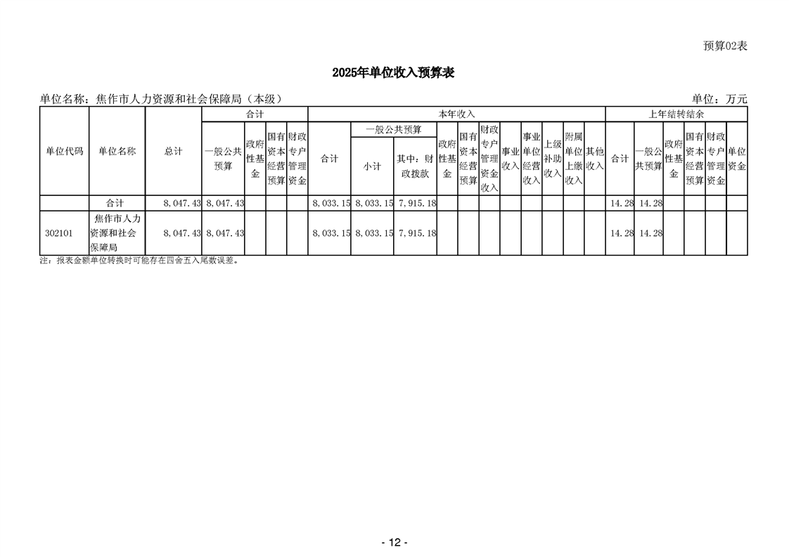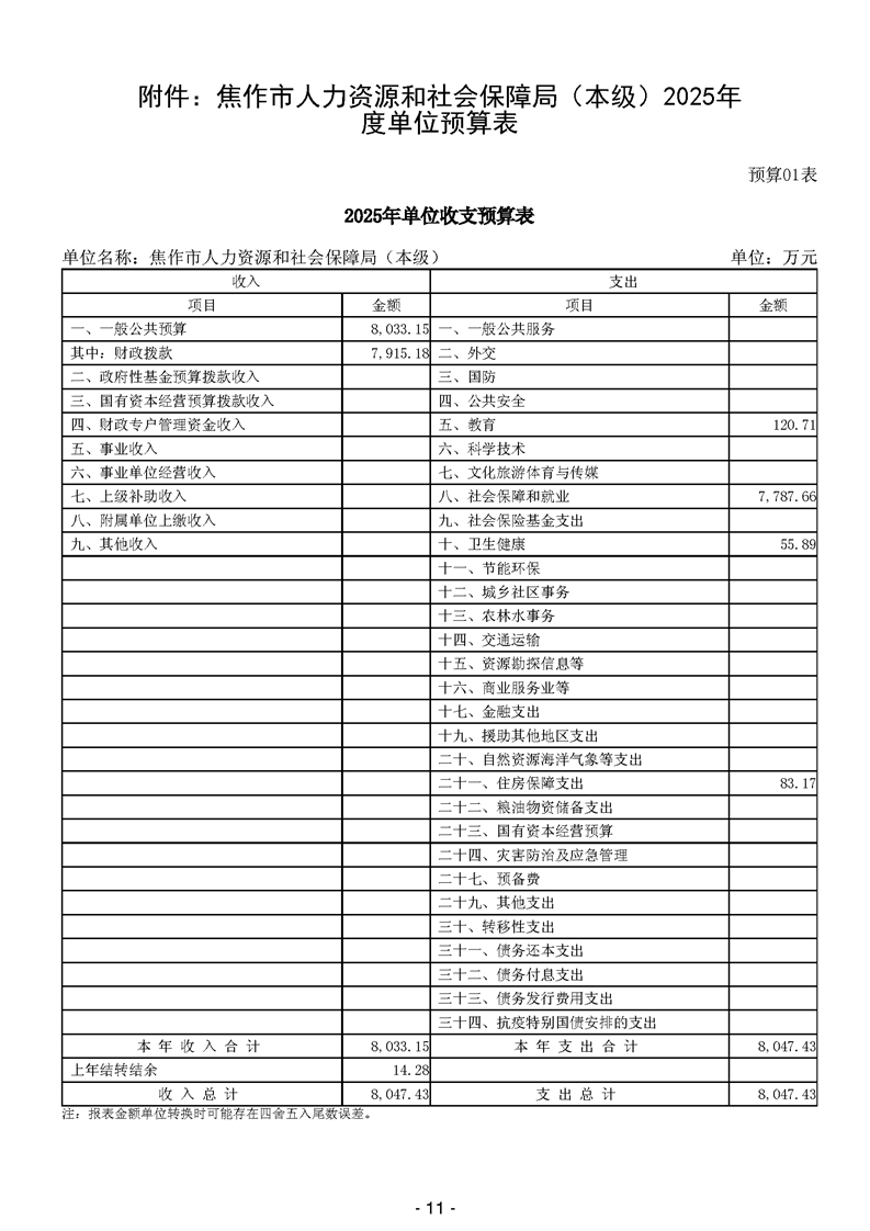 焦作市人力资源和社会保障局(本级)2025年度单位预算.pdf